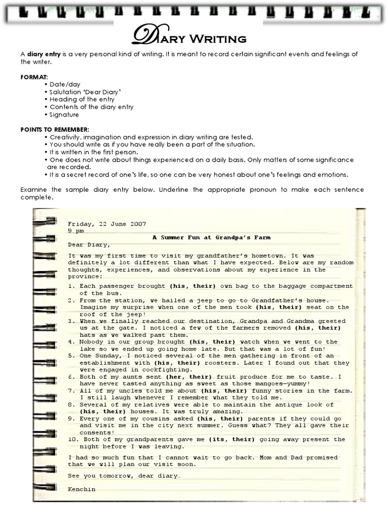 After watching this video you ll be able to attempt any type of question asked in your exam. Your dad decides to give you the birthday gift that you wished. A diary entry is a form of writing where an individual records an account of the day. Use this dear diary template when students are writing diary entries. Entry from leo tolstoy january 25, 1851. I've fallen in love or imagine that i have; Savesave how to write a diary entry.pdf for later. Download as pdf, txt or read online from scribd. Diary entry example ks2 how can this ks2 diary example resource help your students? Y examples for students which would clarify diary meaning. He did not realize he had dropped it. Education degrees, courses structure, learning courses. Get primary kids writing great diary entries with this selection of diary recount writing skills checklist:
